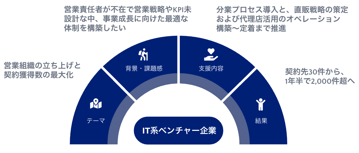 営業組織の立ち上げからプロジェクト参画し、支援開始から1年6ヶ月で2,000件の新規契約を獲得
