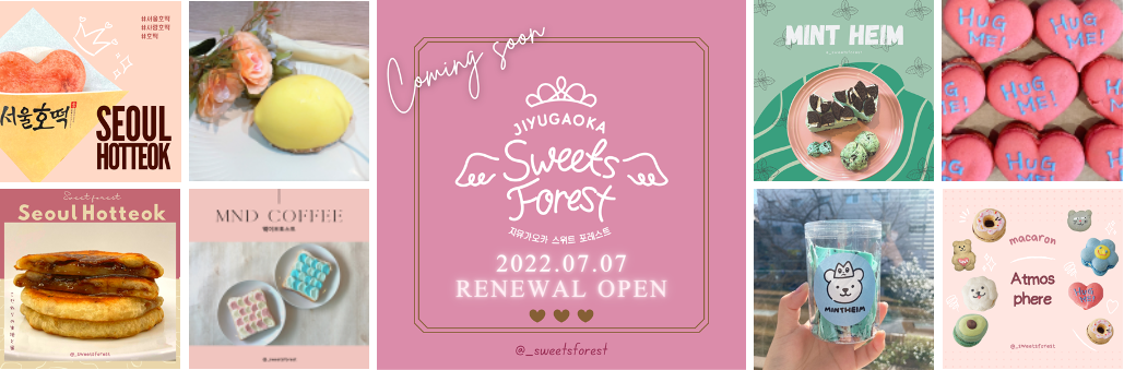 日本初のスイーツテーマパーク「自由が丘スイーツフォレスト」は、2022年7月7日(木)にリニューアルオープンすることを決定しました。日本初出店を含む韓国人気のカフェ&スイーツショップ・グッズなど9店舗が登場し、韓国カルチャーと融合した新たなスイーツエンタメパークとして生まれ変わります。