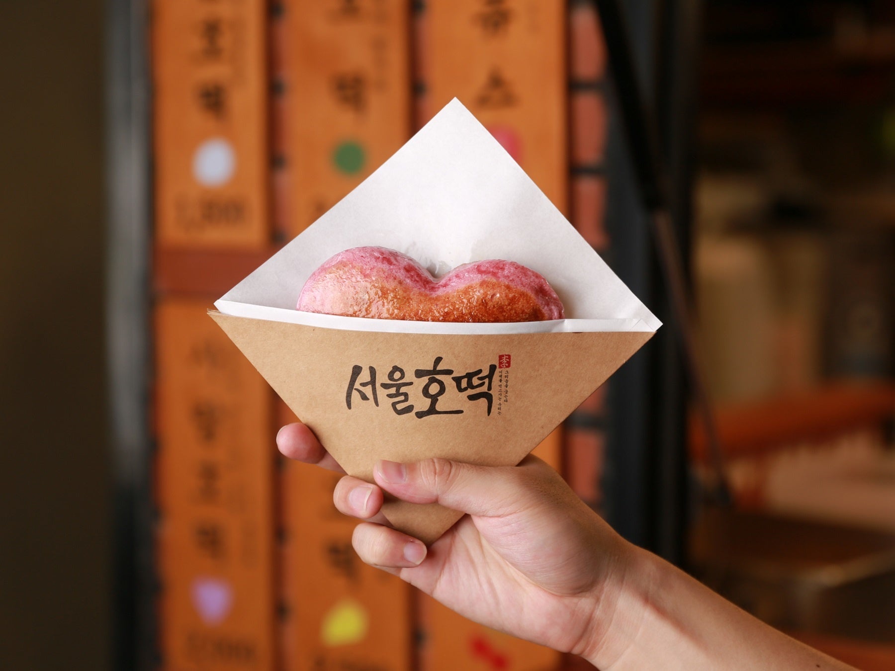 ソウルの中でも有名で人気のあるホットク専門店。特にハート形の「サランホットク」は色もピンクで女性に人気です。
