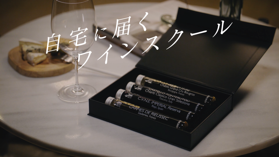 「ホームワイン」は、自宅でワインを嗜み学ぶ、新時代のワインプログラムです。全12回の定期学習サービスで、全世界の高級ワインを飲み比べながら、実際に使える知識をお届けします(https://homewine.jp/)。