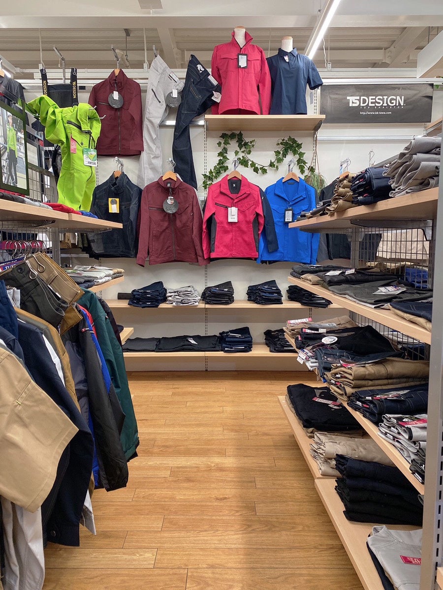 店内には通勤やオフィスで身に着けるアパレルや靴、作業現場での快適と安全をもたらすレディース専用のワークウェア・安全靴・手袋・かわいい農作業ウェア・ガーデニンググッズを品揃え。
