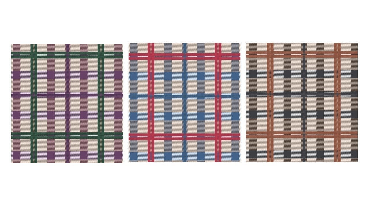 女王の華やかな装いによく取り入れられる鮮やかなパープルを基調としたカラー、愛らしい印象を与えるレッドとブルーの配色が美しいカラー、DAKSのアイコンであるハウスチェックカラーの3色で表現。
