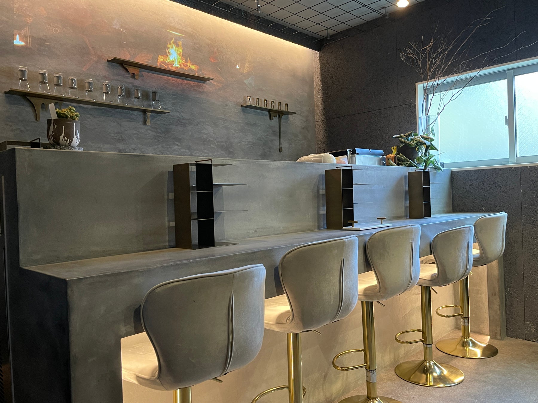 店内は、紅茶の優雅な魅力を引き立てるよう、落ち着いたモルタル調の内装でデザインされております。また、プロジェクターを使用し、落ち着いた雰囲気と心地よいBGMで五感を刺激し、都会の喧騒を忘れる自然の癒しの空間となっています。