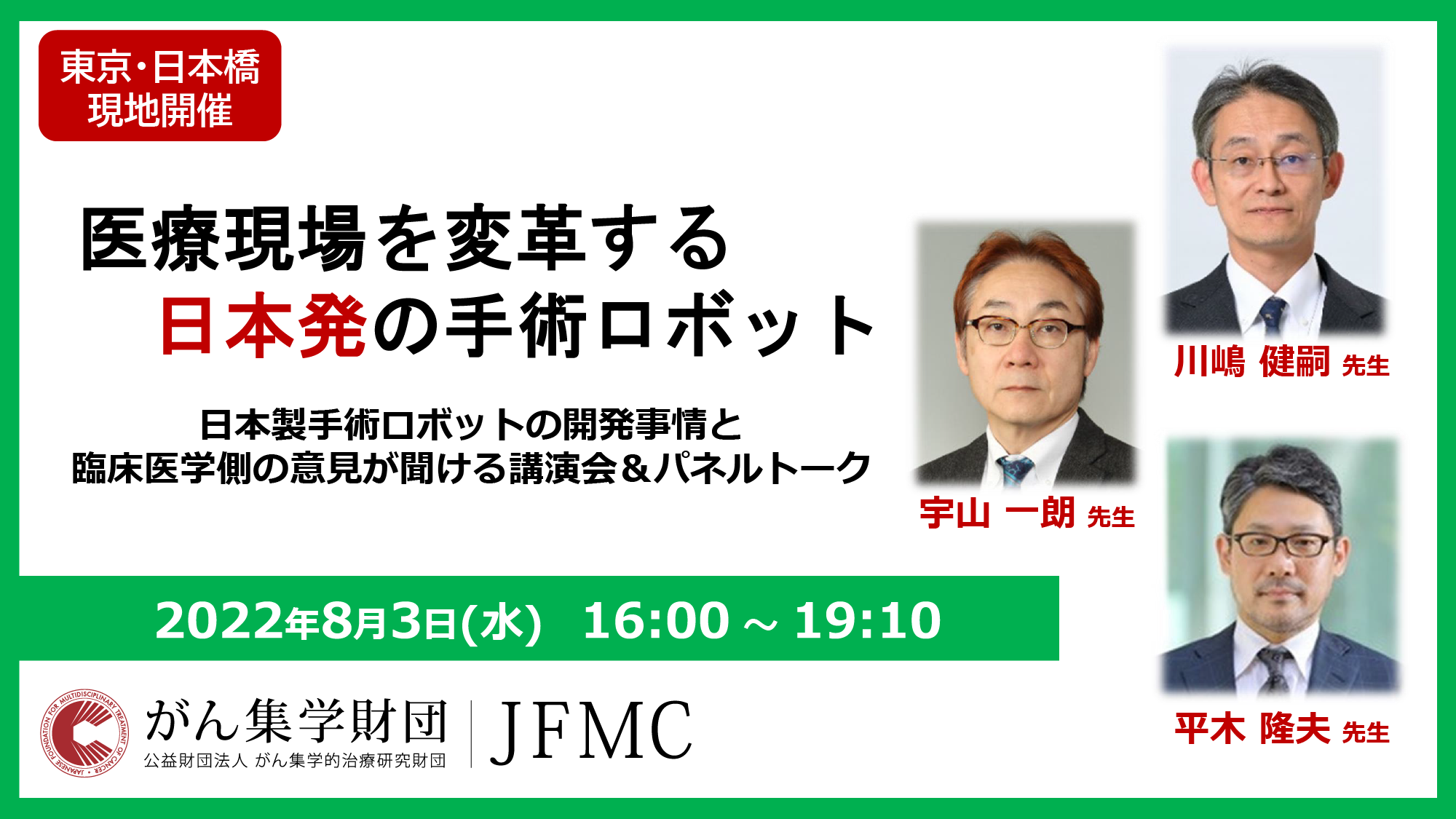 医療現場を変革する日本発の手術ロボットをテーマに講演会&パネルトークを8月3日(水)に東京・日本橋で開催。40年間がん治療・研究に取り組む「がん集学財団」が、がん治療としての手術ロボットに注目。