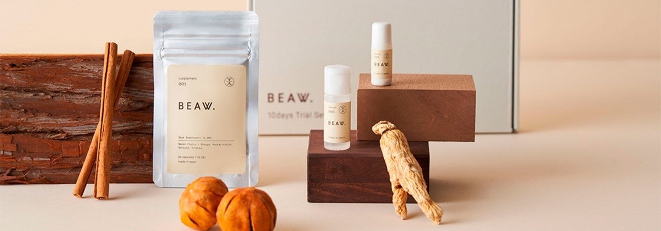 古来より人々を健康に導いてきた数々の生薬。自然の中で育まれた漢方に秘められた豊かな恵みに注目し、現代の技術でよりからだと肌へ届きやすいスキンケアが誕生しました。 BEAW.のパーソナライズケアは始めに美肌分析を行い、10万通りもある漢方由来成分の組み合わせから一人ひとりの肌質タイプに合わせて配合した製品をお届けします。D2Cブランドだからこそできる「あなただけのスキンケア」を実現します。