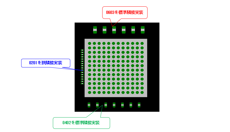 これらの課題解決に向け、キョウデンはマウンタ、部品隣接間隔、メタルマスク厚と開口径、部品パットサイズ、部品レイアウト等から最適な条件を検証し、狭隣接実装技術を確立すると共に、設計時におけるシミュレーション活用と多段ビルドアップ基板製造によるトータルソリューションにより、製品の高機能・小型化を実現しました。