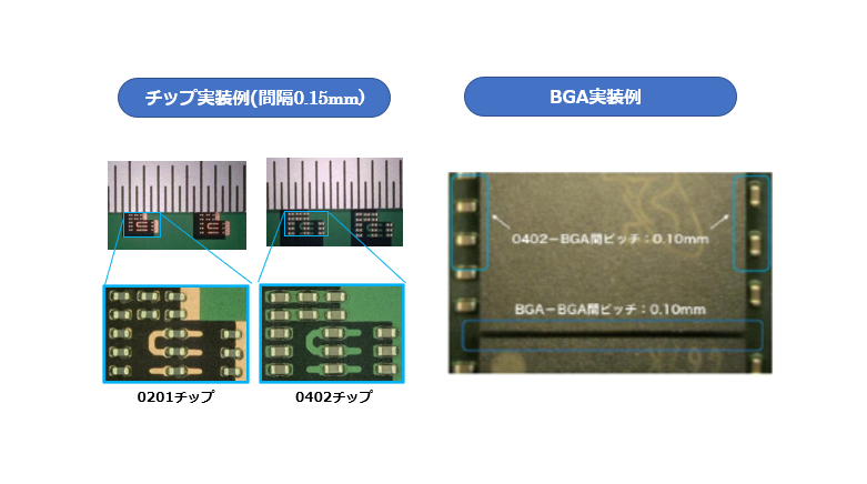 今後、このような機器を取り巻く製品、モジュールの小型化は更に進展し、次世代の極小チップである0201サイズや高機能・多ピンの要求から狭ピッチ化された半導体パッケージの提案も始まっております。