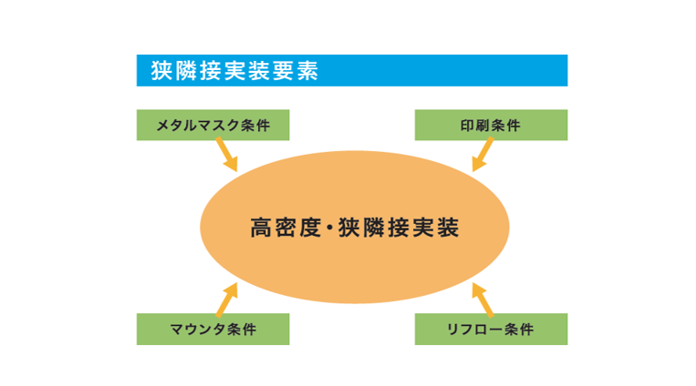 小型電子機器に複数の高密度・高集積半導体や極小SMD等を実装する際は、狭隣接実装に対応した設備とノウハウが必要です。