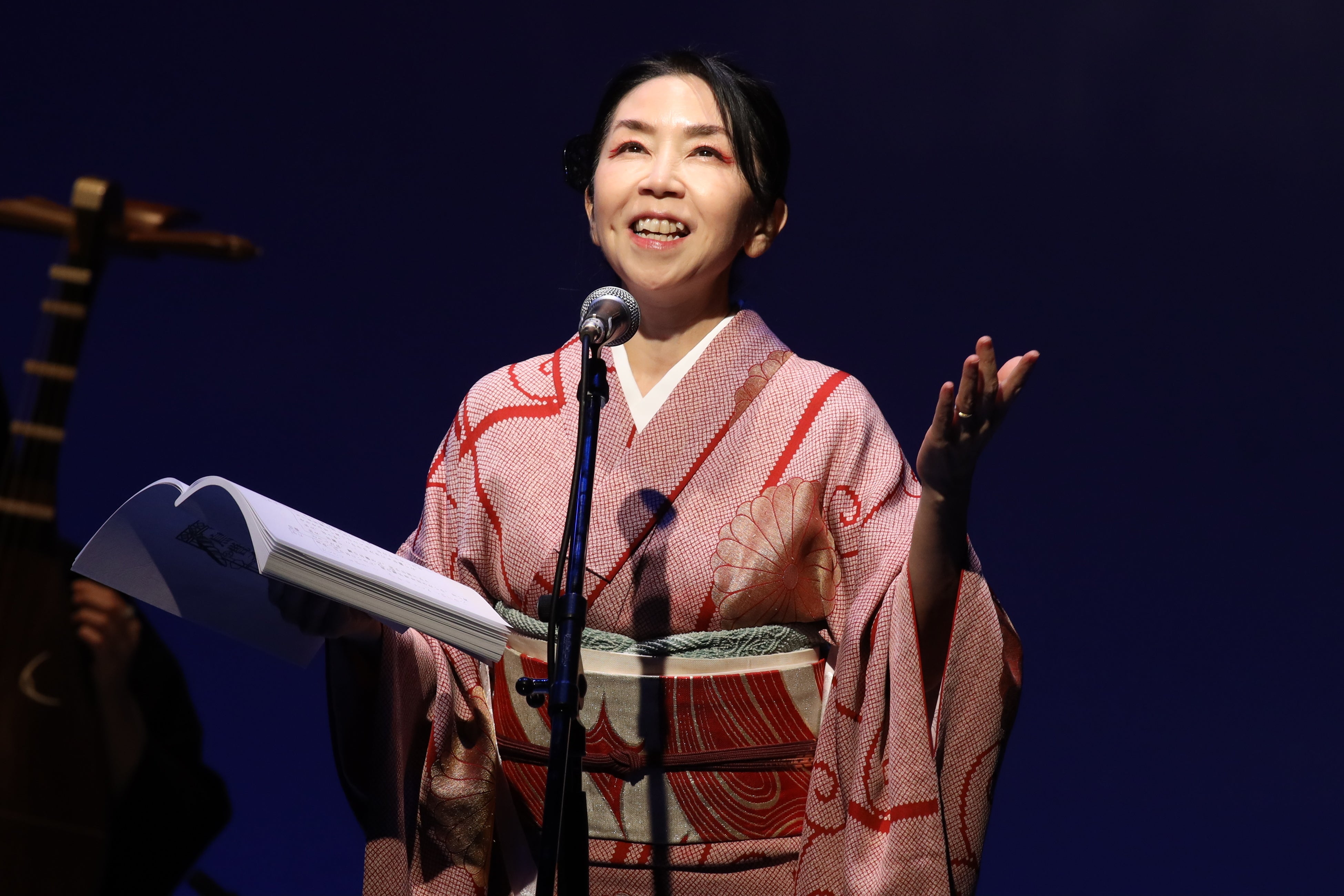 美しい和楽器の演奏、妖艶な舞踊、そして豪華衣装に身を包んだ朗読陣の迫真の演技が織り成す、
