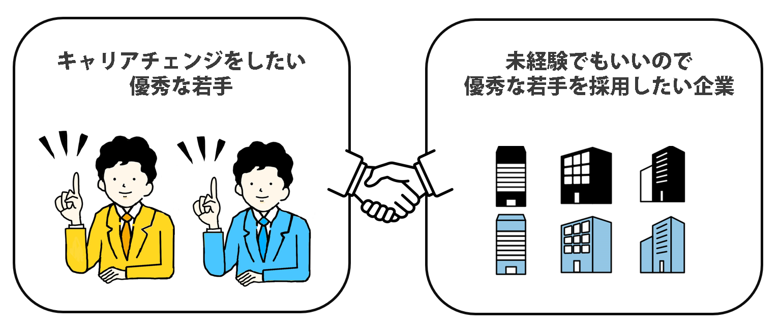 『未経験でもいいので、優秀な若手を採用したい企業』をマッチングする転職サービスです。