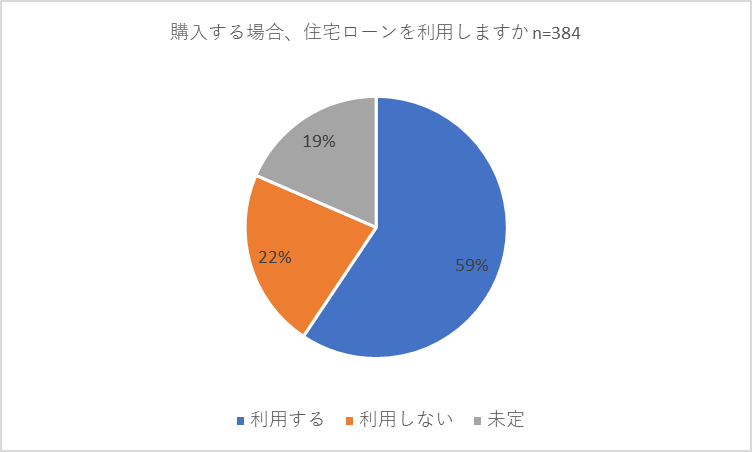また、「購入する場合、住宅ローンを利用しますか」との問いには59パーセントが「利用する」、22パーセントが「利用しない」、19パーセントが「未定」と回答しました。