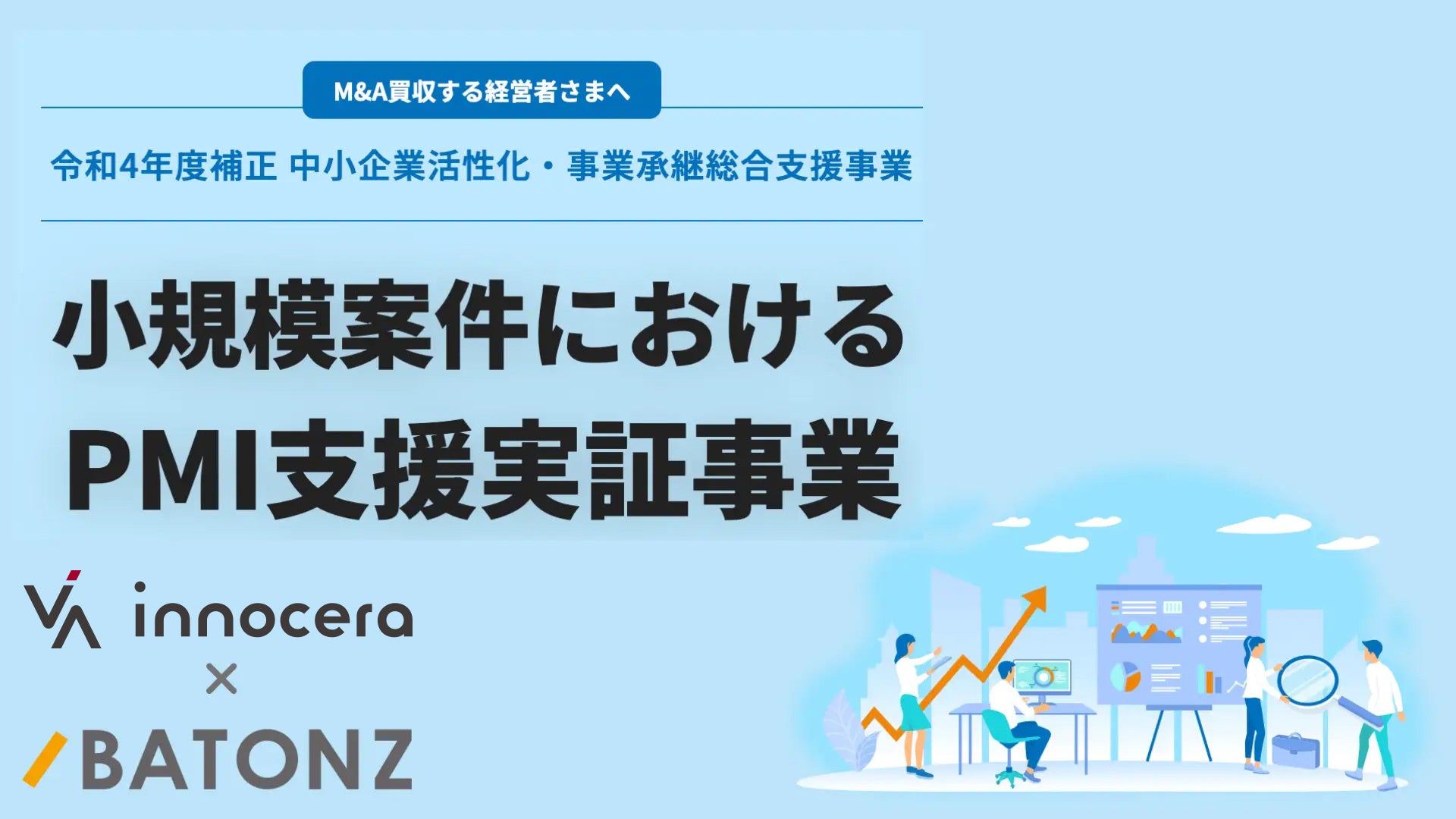 中小・ベンチャー向け社外CFO支援を展開する株式会社イノセラが、バトンズと協業し、中小企業庁が実施したPMI支援実証事業にて中小企業のPMIにおける「型」の実証を支援