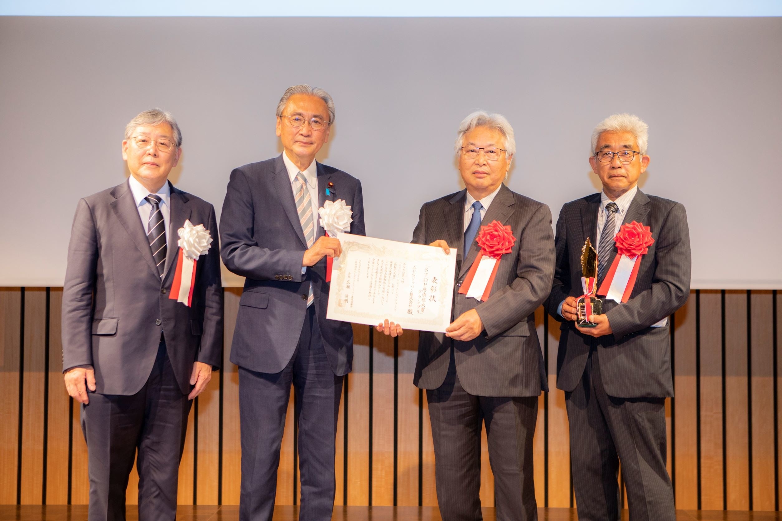 左より、東北医科薬科大学特任教授 賀来満夫様、衆議院議員 古屋圭司様、当社代表取締役社長 渡邉輝夫、当社高崎開発センター 山口雅夫