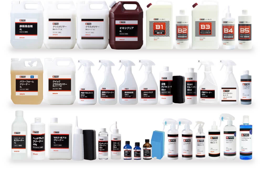 カーケアブランド「BPRO(ビープロ)」に、ボディコーティングを始めとした幅広いラインナップでカーディテイリング製品を開発・製造・販売しています。また、機能性コーティング・カーディテイリング製品のOEM受託事業を行なっております。