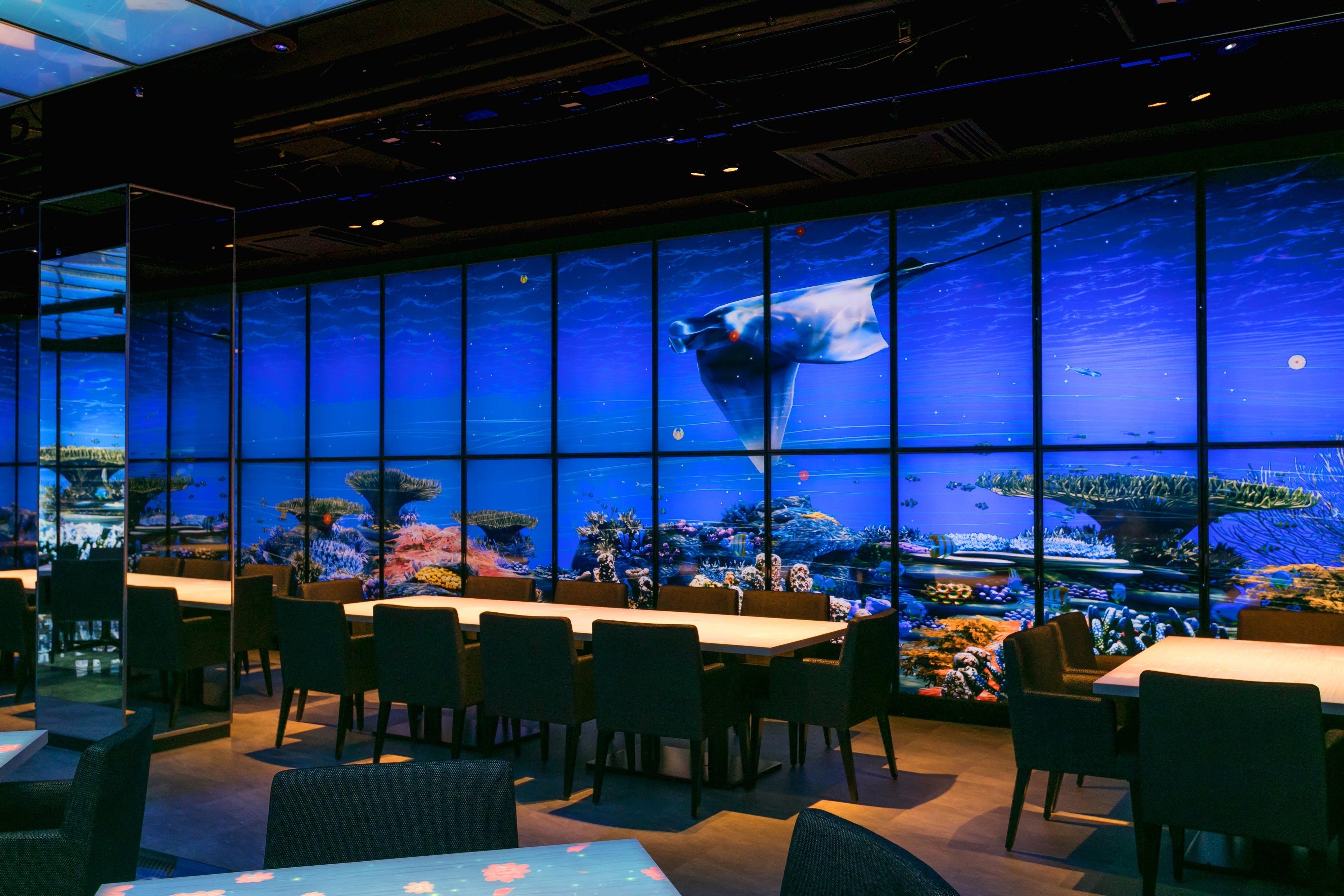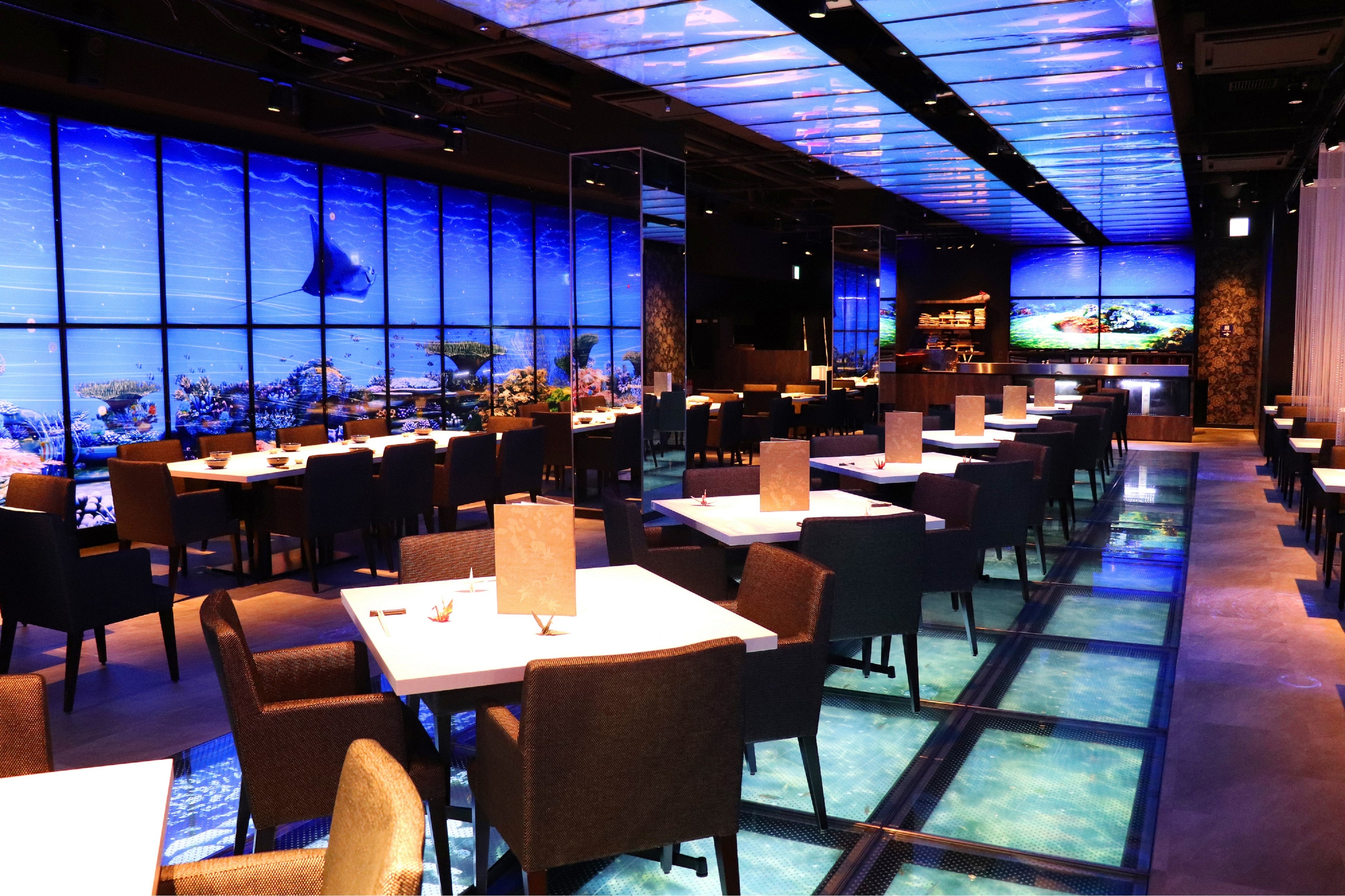 最新技術の映像と伝統の日本料理の融合をコンセプトにメインホールの360°を取り囲む大迫力の200台モニター映像が季節や用途に合わせて様々に変化し、新しい感覚を体験できるのが魅力、映像を料理と共に五感で楽しめる新たな日本料理の世界へとお招き致します。30年間ご愛顧頂いた「築地 竹若」が2019年7月にリニューアルして誕生いたしました。