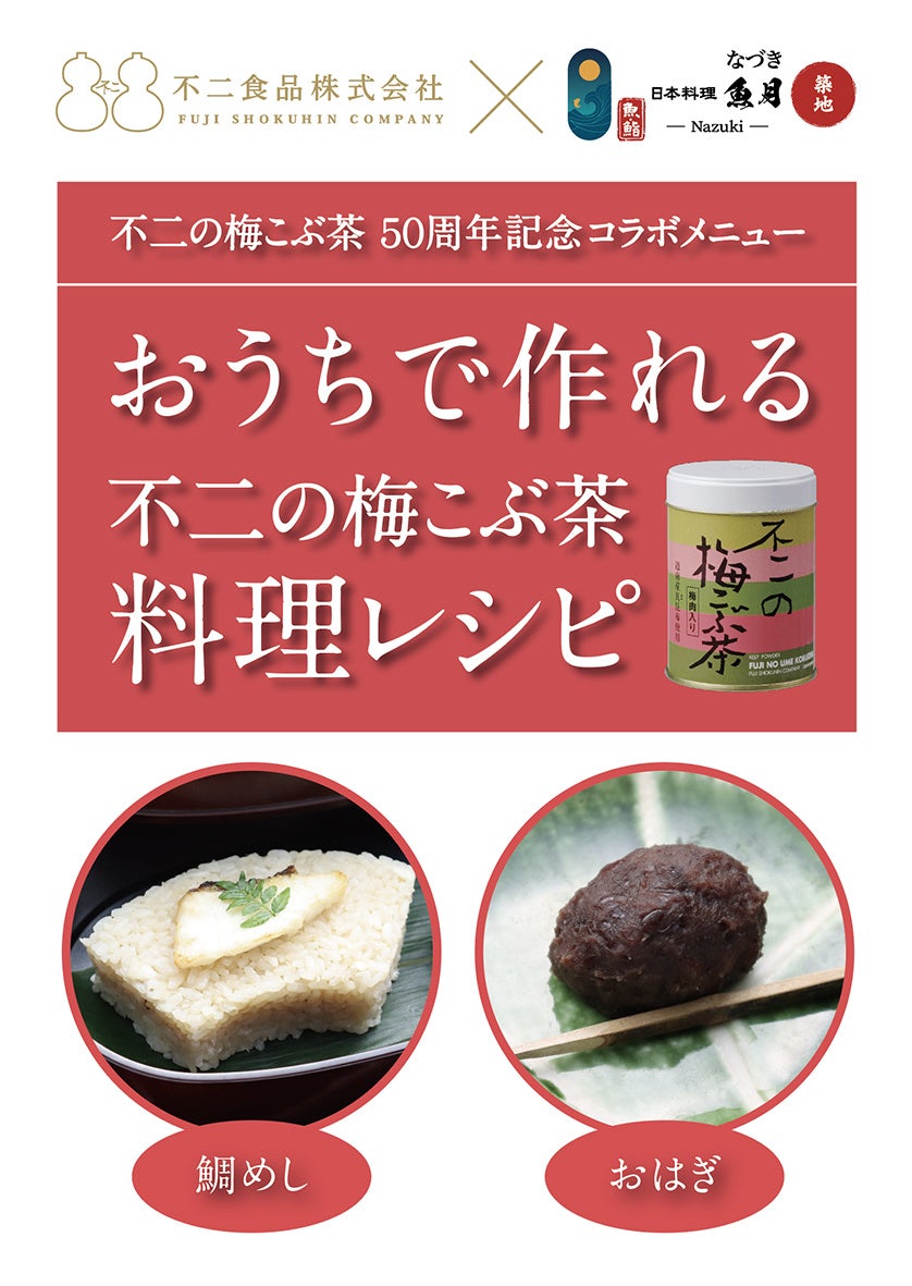 昆布製品の製造や加工、販売を手がける不二食品株式会社代表商品の1つである『不二の梅こぶ茶』は、2022年3月に発売50周年を迎えたロングセラー商品です。厳選したこだわりの素材を使い、厳しい品質管理のもと伝統技術を駆使した製品作りに定評があり、そのまま飲むのはもちろんのこと、和洋中と様々な料理にも使える万能調味料として重宝される一品で、企業とのコラボレーション企画も数多く手掛けています。