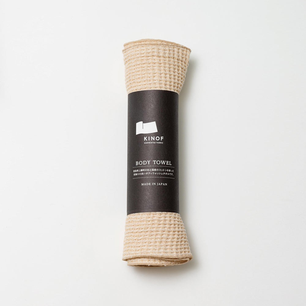 上勝町の杉の木を使った糸でタオル製品などがあります。 KEETOを運営する合同会社すぎとやまの代表 杉山がKINOFのブランド立ち上げ商品企画を行いました。