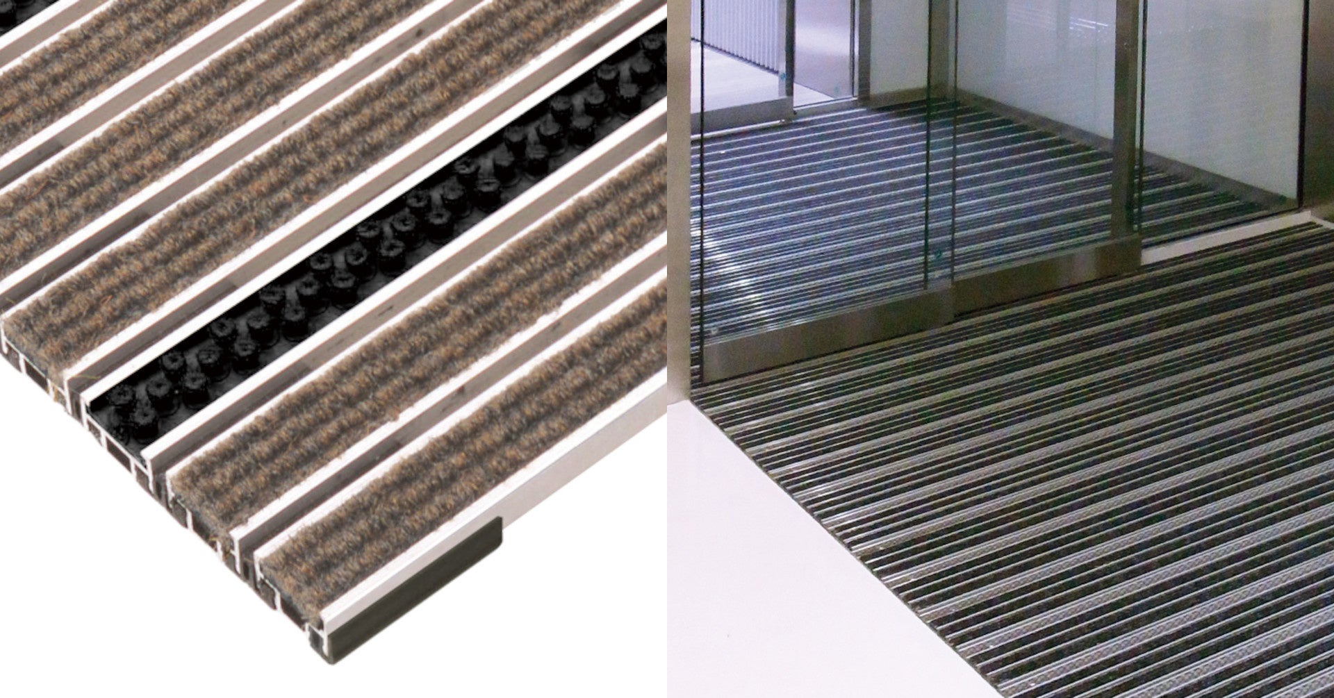 繊維マットとブラシの組み合わせで高い除去力を実現しつつ、繊維マットとブラシのツートーンカラーがエントランス空間に彩りを与えてくれます。