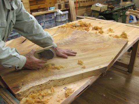 《廃棄される一枚板の座敷机を再生して作る