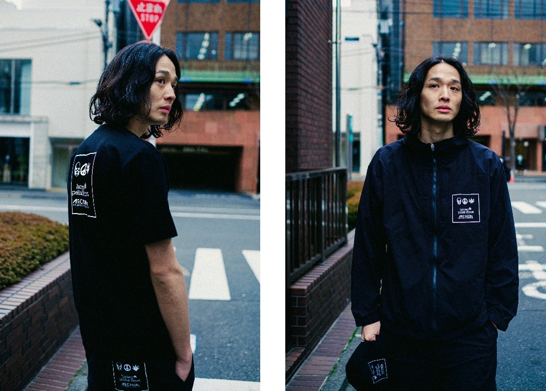 ウェアは、ブラックで統一されシックなイメージを与えつつ、スカル、ピースマーク、リーフのモチーフを使用することで遊び心も感じられます。ジャケットとパンツには裏起毛を使用することで、柔らかな着心地を実現しています。