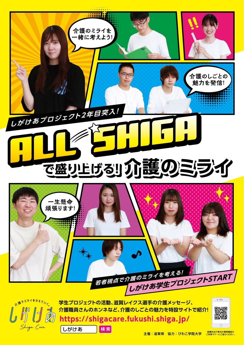 滋賀県の若者に、介護や介護の仕事をもっと知ってほしくて始めた『しがけあ』プロジェクト。2年目は、介護業界からの情報発信だけではなく、県内の学生や企業を巻き込んでお伝えしていきます。