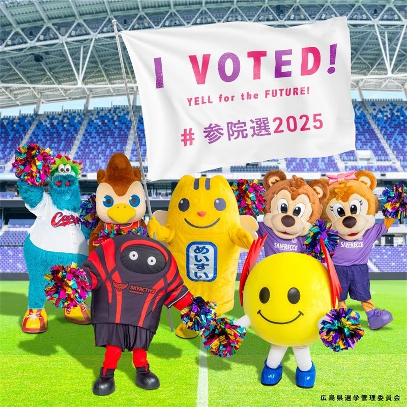 広島県民に親しまれているプロスポーツチームの人気マスコットたちが、若年層や子育て世代を中心に幅広い世代に投票を呼びかけます。