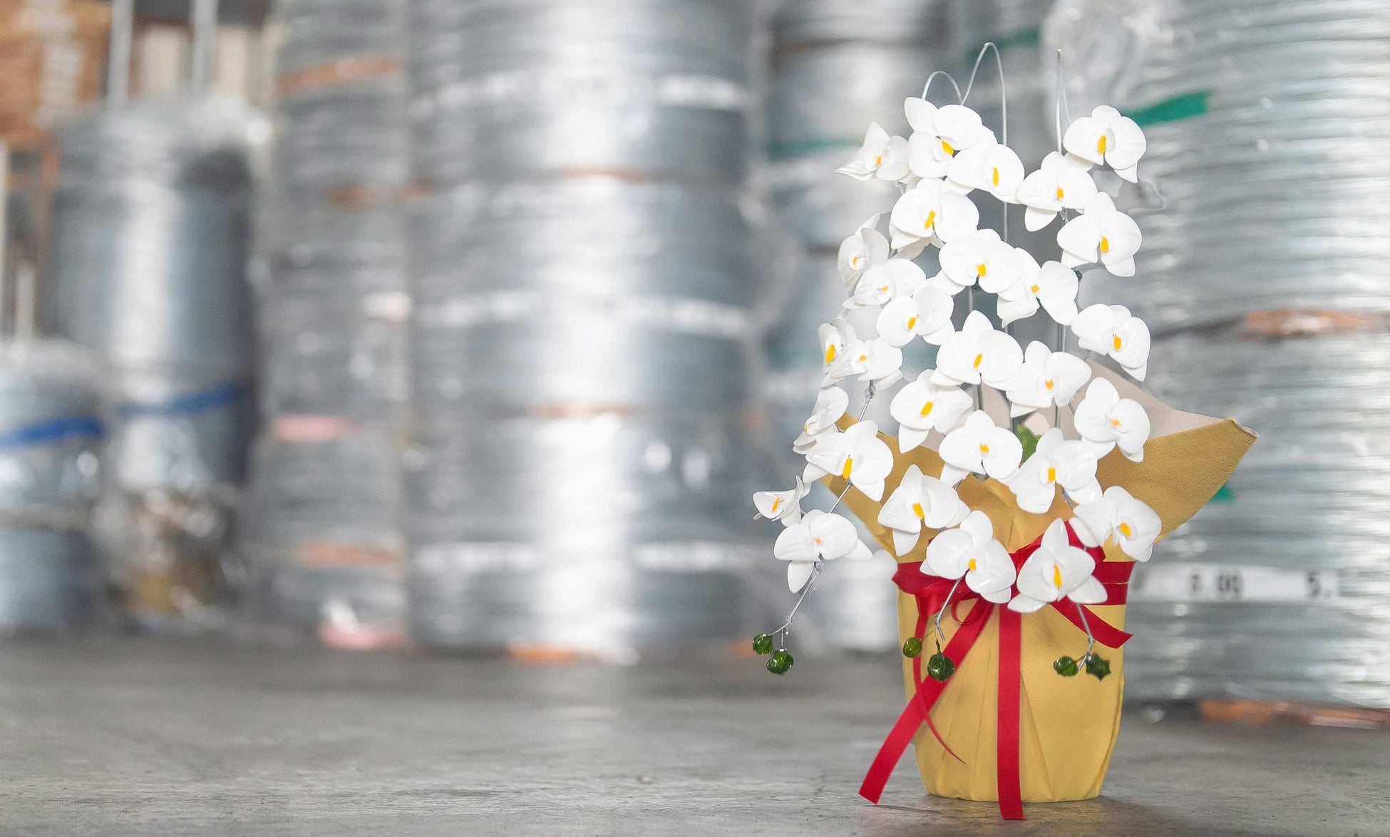 85年目を迎え、極厚亜鉛めっき鉄線のパイオニアとして業界で長く事業を展開してきました。主要な亜鉛めっき鉄線メーカーは、国内に3社のみで、当社は業界唯一のオーナー企業。業界において欠かせない重要なポジションを担い、様々な産業を支える製造カンパニーです。現在では、弊工場が発生した針金廃材を活用したアート作品、インテリアなどを展開するサスティナブルブランド「HARIOMO(ハリオモ)」を2021年10月に設立。HARIOMOから波及したプロポーズ専用のバラ「KIMIHANA」や贈答用のワイヤーアート胡蝶蘭のレンタルサービス「コチョスク」などを展開しています。(2024年7月時点)。