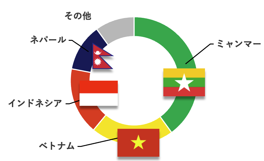 まだまだ発展途上の東南アジア出身の方々は母国で仕送りを待つ家族のために懸命に働いてくれる方ばかり。加えて、仏教徒も多いので「徳を積む」とい仏教徒の多い東南アジア人は「徳を積む」という考えの下、素直に規律正しく一生懸命働く傾向があります。そんな仏教徒であるミャンマー人、ベトナム人などの東南アジア人を中心にご紹介させて頂いております。