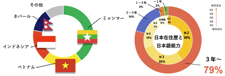 特徴⑤:日本で就労経験があり日本語力の高い人材多数!
