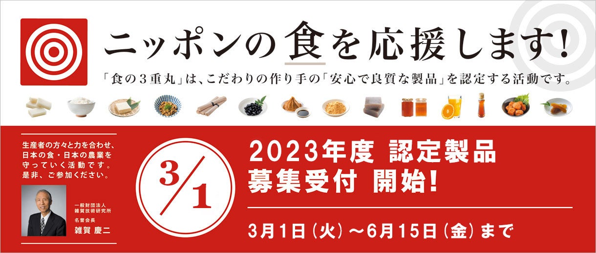 「2023年度 食の3重丸 認定製品」の募集を開始!