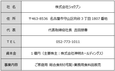 株式会社ショクブン(本社:愛知県名古屋市、代表取締役社長:吉田 朋春)は、創業より45年にわたって夕食材料の販売・宅配を主要な事業としてサービス展開し、東海エリア・関西エリアのお客様を中心に、ご家庭での献立を提案してまいりました。