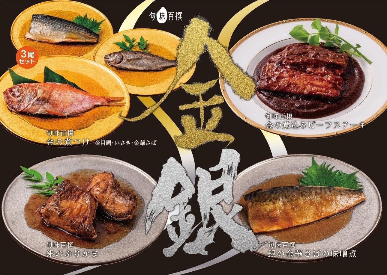 現在、真空調理された旬のお魚料理を定期便で全国へお届けする「お魚詰合せセット」と、こだわりの素材と調理法で贅沢に仕上げた「金・銀シリーズ」を展開しています。