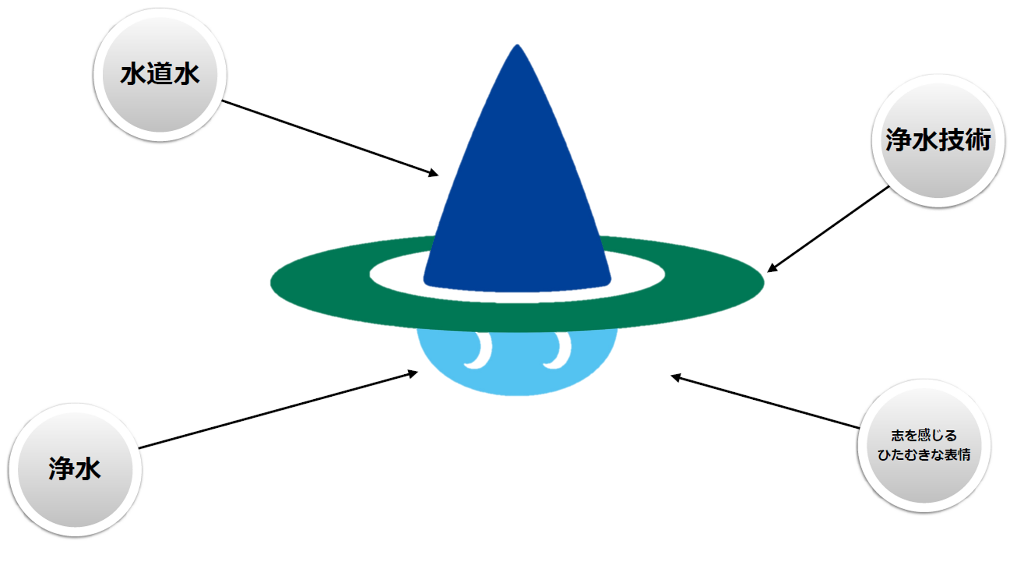 ② 水道水が「信大クリスタル」を通って、磨かれてより美味しくなっていくことをイメージしています。