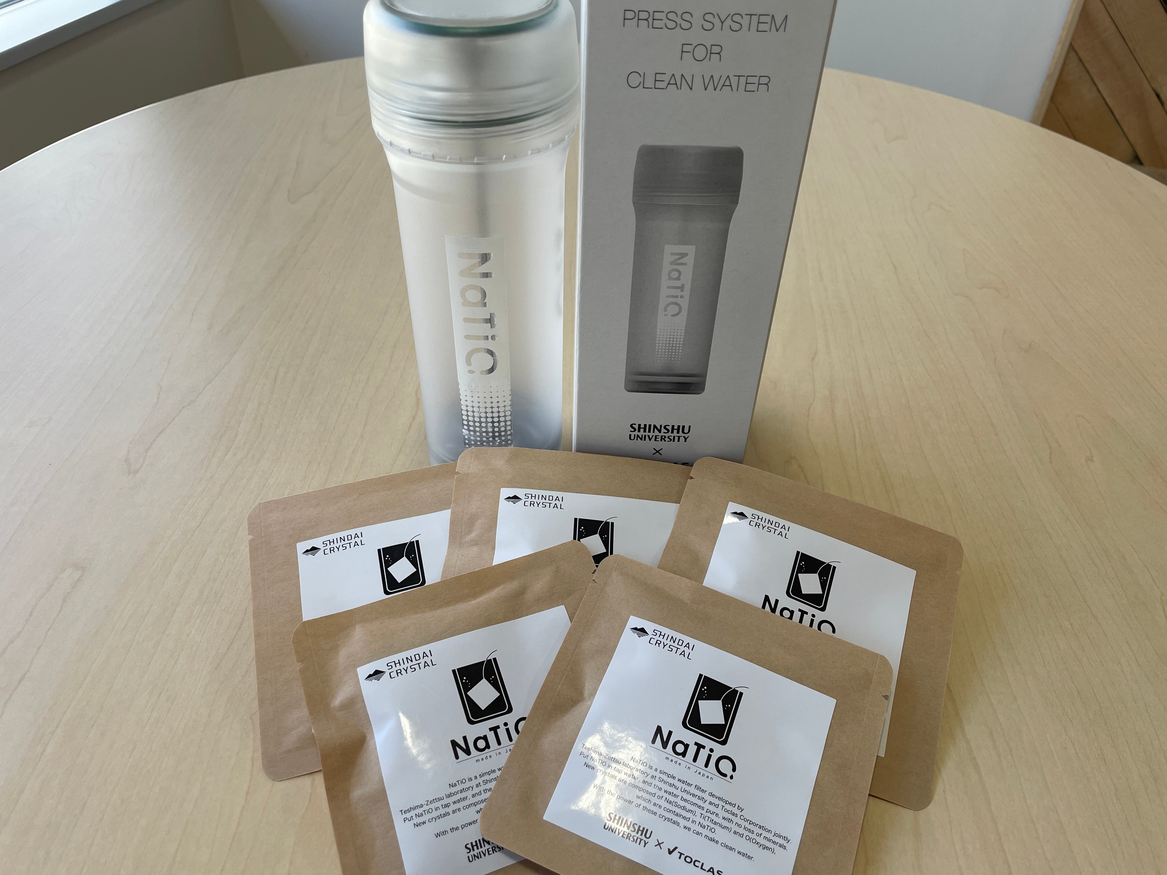 ①信大クリスタル搭載浄水器一式(携帯型浄水ボトル1つ・ティーバッグ型浄水器5つ)