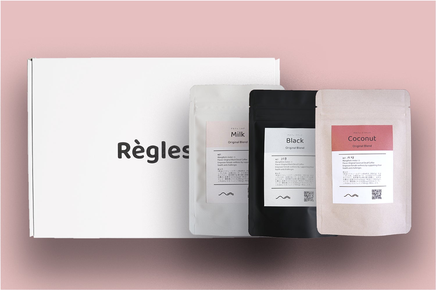 「生理のあたりまえを、アップデートする。」をミッションとして女性特有の悩みをもつ本人と、それを想いやるパートナーの2人が2021年に設立した株式会社Utress(株式会社ユトレス:東京都渋谷区)は、自社のRègles(リーグル)ブランドから生理期間の最大の悩みのひとつである「眠気」に着目し、デカフェなのにカフェイン効果が期待できる「エナジーデカフェコーヒー」のマンスリーボックスにて、期間限定フレーバーを加えて販売を開始しました。【URL】https://regles.utress.jp