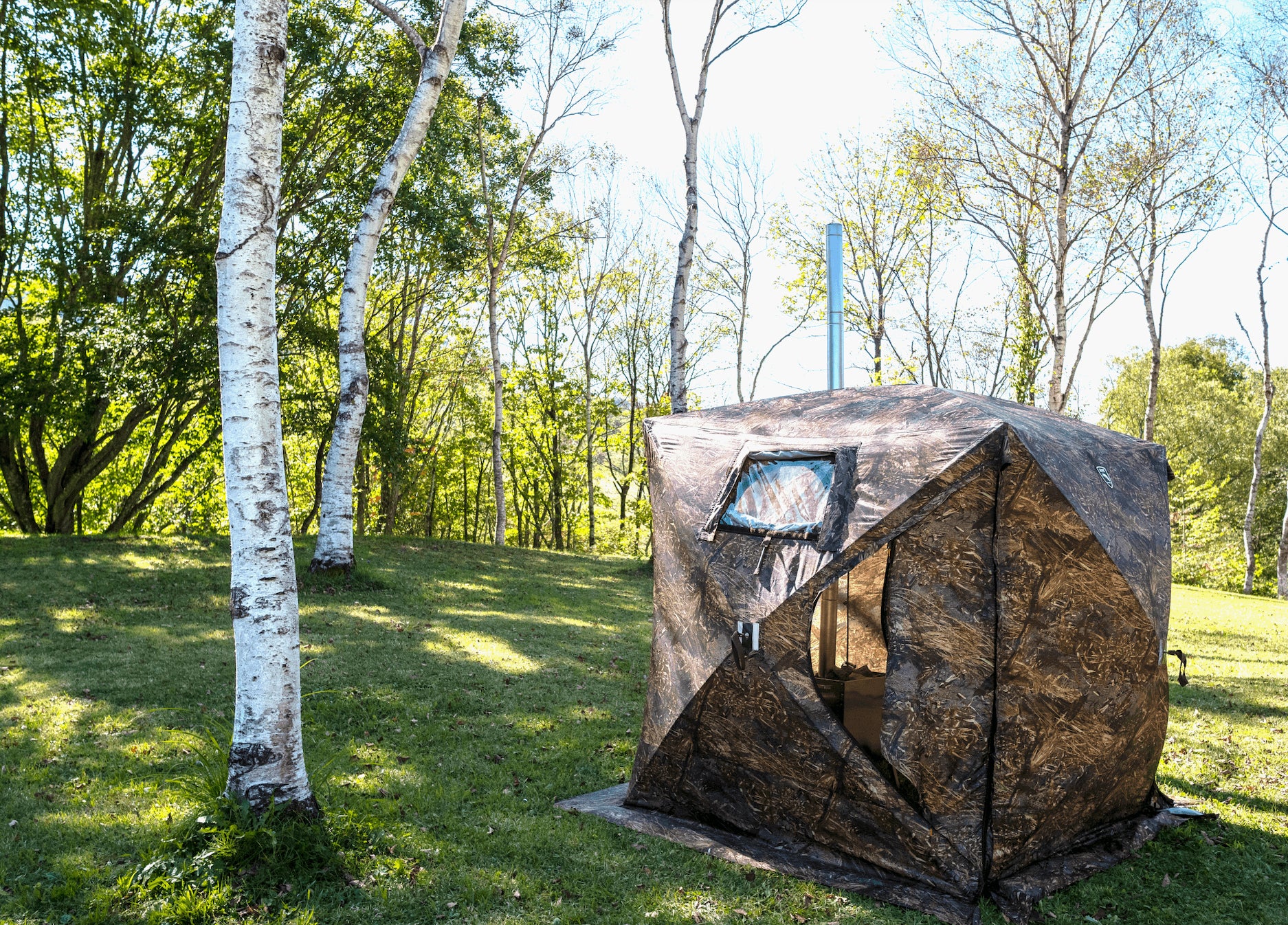 海、川、湖、自宅の庭で。汗をかいた後はこのテントサウナ1台で、余韻に浸りながらそのまま、まったりタイムに突入できます。