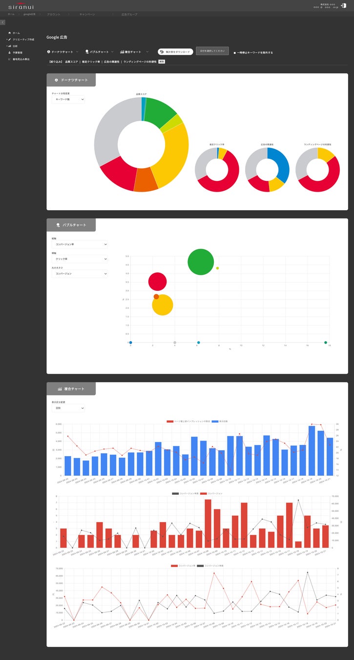 当社設立後もグーグル広告のシステムおよびプロダクトの仕様に基づいたアカウント分析及び改善施策の立案や大型アカウントの運用業務をサービスとして提供し、自動化を前提とした効率的な運用業務を遂行するために今回リリースするsiranuiの前身となる社内システムを2018年より構築。運用型広告のパフォーマンスの最大化および最適化と業務効率の改善を市場全体に浸透させることが当社の使命と考えております。