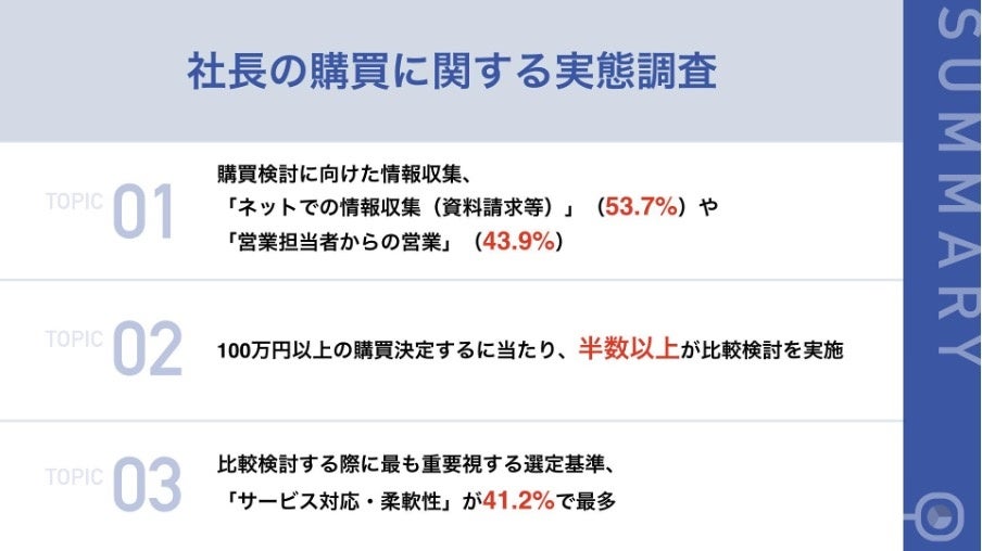 【オンライン時代の社長の購買に関する調査】最終意思決定者の社長の半数が購買は「目的志向」 また5人に1人は「比較検討をせずに」購買を決定