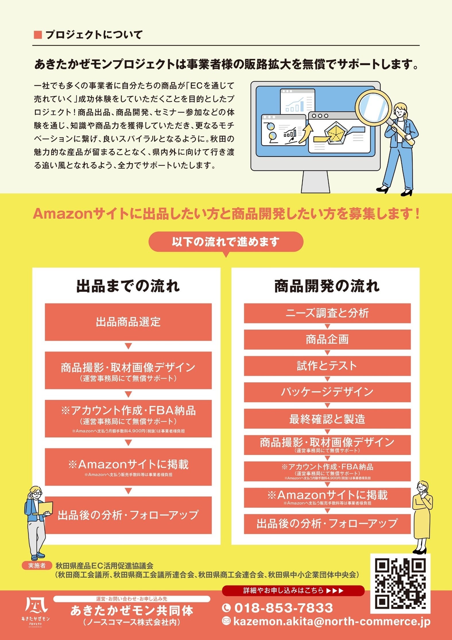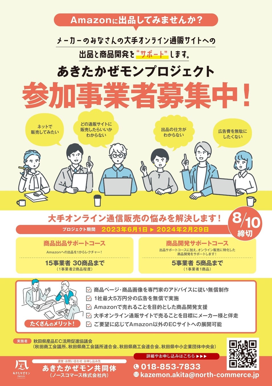 令和5年2月から開始しております秋田沖4市町村を対象とした第一弾に続き、第二弾は秋田県全域の事業者を対象として、主にAmazonを活用したEC販売の出品立ち上げ及び販売サポートを行ってまいります。
