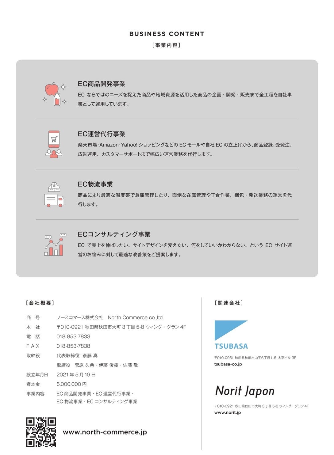 ・問い合わせ先:ノースコマース株式会社 ☏018-853-7833