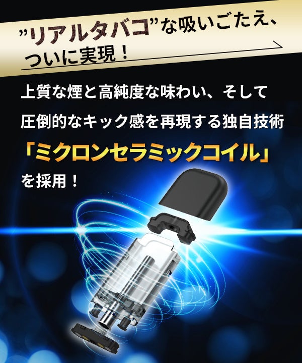 - その吸いごたえの秘密は独⾃技術「ミクロンセラミックコイル」にあり!