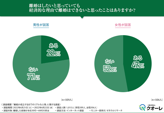 離婚したいと考えてはいるものの、「その後の生活は大丈夫なのか」といった不安を感じている方の割合について、引き続き調査を行いました。