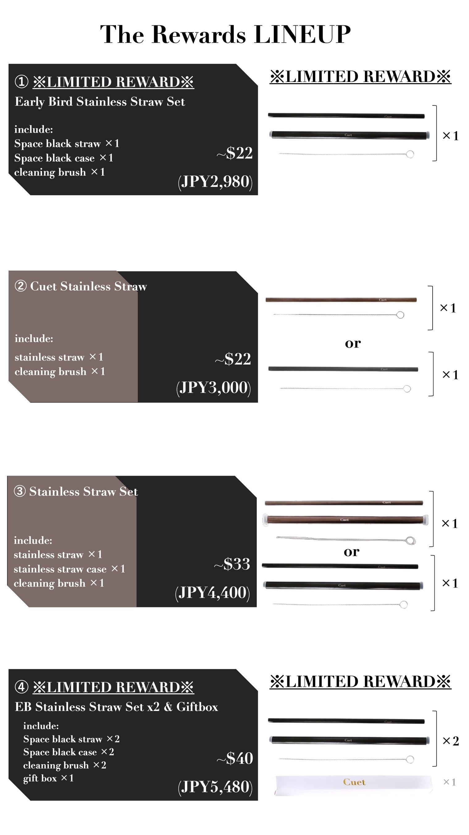 本プロジェクトは、初版8分で2000本を販売したCuetステンレスストローを、より多くの方、特に海外の方にもお届けしたいという思いから、実行する運びとなりました。