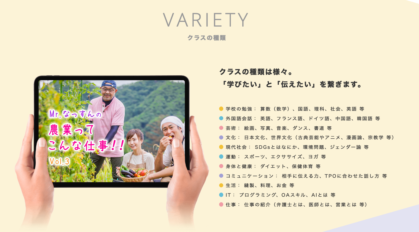 ※ライブ形式以外に、コンテンツ視聴型のクラスも展開予定です。