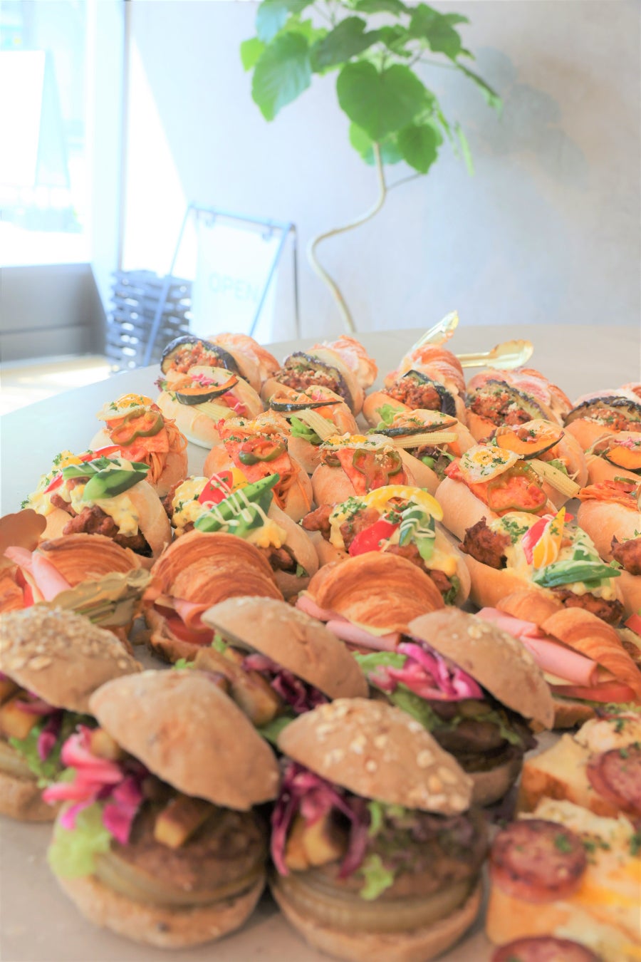 例えば、こだわりの美味しいパンは大阪市弁天町にある「モリパン工場」と協業して商品開発しました。業界内で高く評価されているモリパンの工場が全面的に協力して、テラスのパンを作り上げました。パン職人歴12年超のモリパン代表のモリモリさん。彼女の愛情がこもった、職人の技で毎日焼き上げられるパンを、ぜひご賞味ください。またパン職人以外にも、和食やイタリアンの料理人・パティシエ、バリスタなどなどあらゆる分野の職人が携わり、惣菜パン・菓子パン・食パン・サンドウィッチなど多様な魅力あるパンを揃えています。