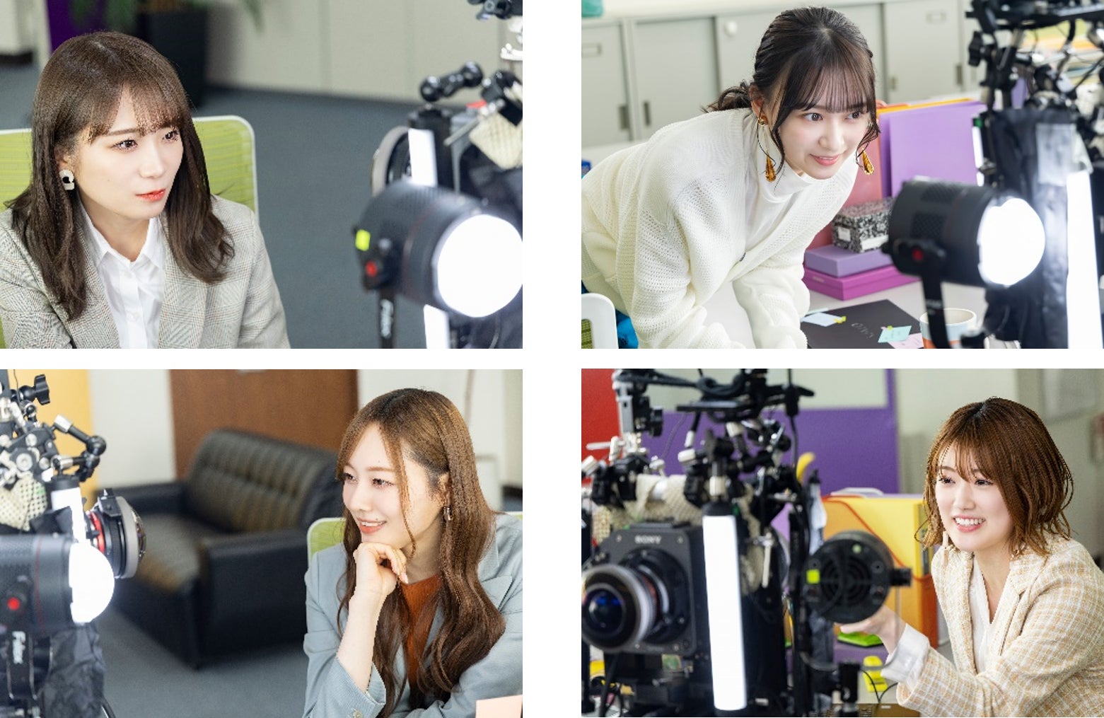 乃木坂46のメンバーと過ごす日常をコンテンツ化。一緒にミーティングをしたり、ランチのメニューに悩んだり、こっそり秘密の会話をしたり。高精細な8K HDR 360度の映像で、ぐっと距離が近くなる。いつも見ていた乃木坂46のメンバーと同じオフィスにいる体験ができます。