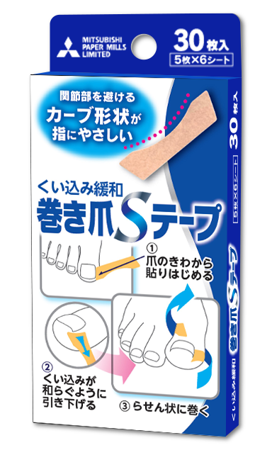 巻き爪のセルフケア 足指に貼るテープ「巻き爪Sテープ」発売
