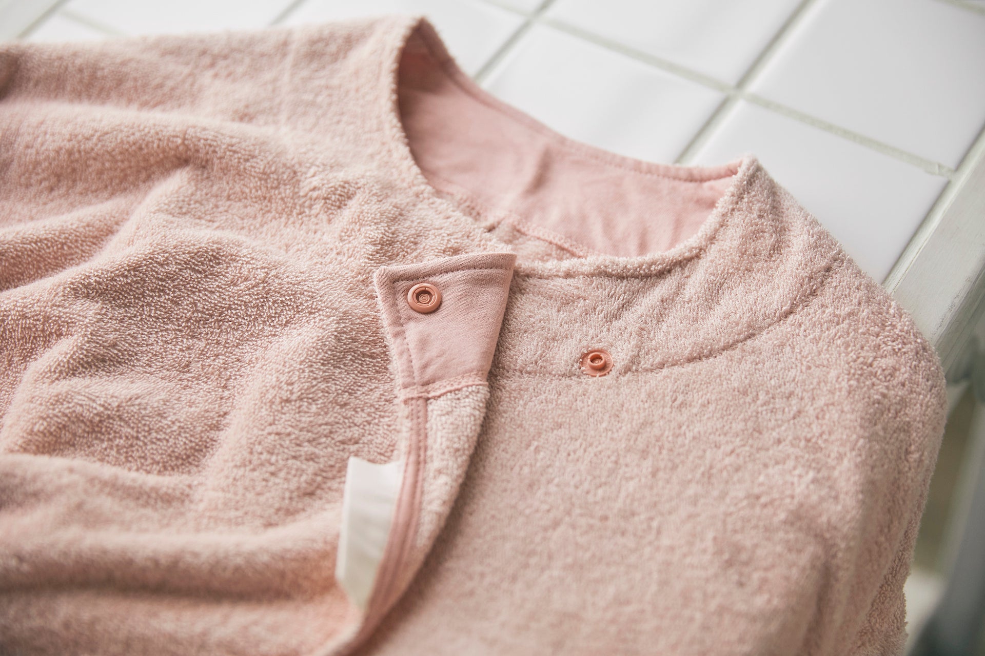 肌触りの良いタオル生地を使用した、さっと羽織れる便利なガウン。お子様と一緒の慌ただしいお風呂上がりや自分時間をほっと一息をついて過ごしたい時など、きっと馴染みの薄いアイテムだからこそ、生活に寄り添えるよう使いやすさにこだわりました。