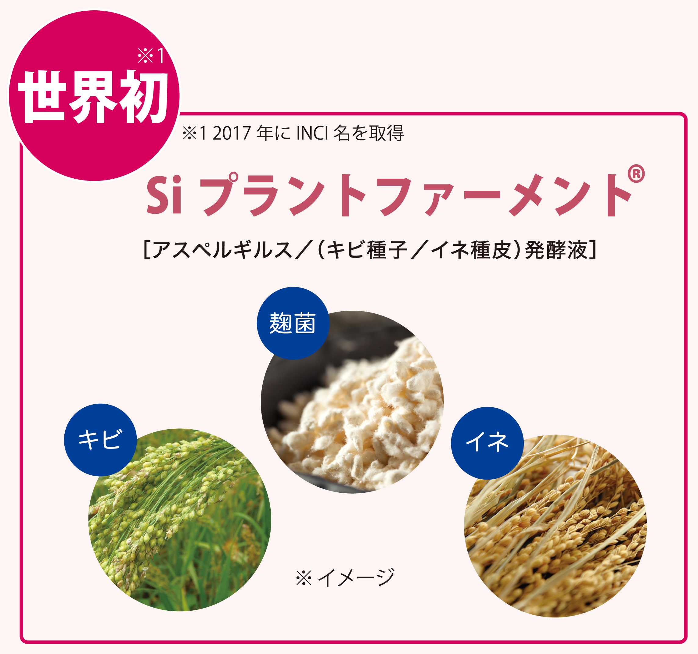 世界初(※1)の『Siプラントファーメント®(※2)』は、国内で栽培されたキビ・イネを麹菌の酵素分解力で熟成発酵し、抽出した独自開発成分。