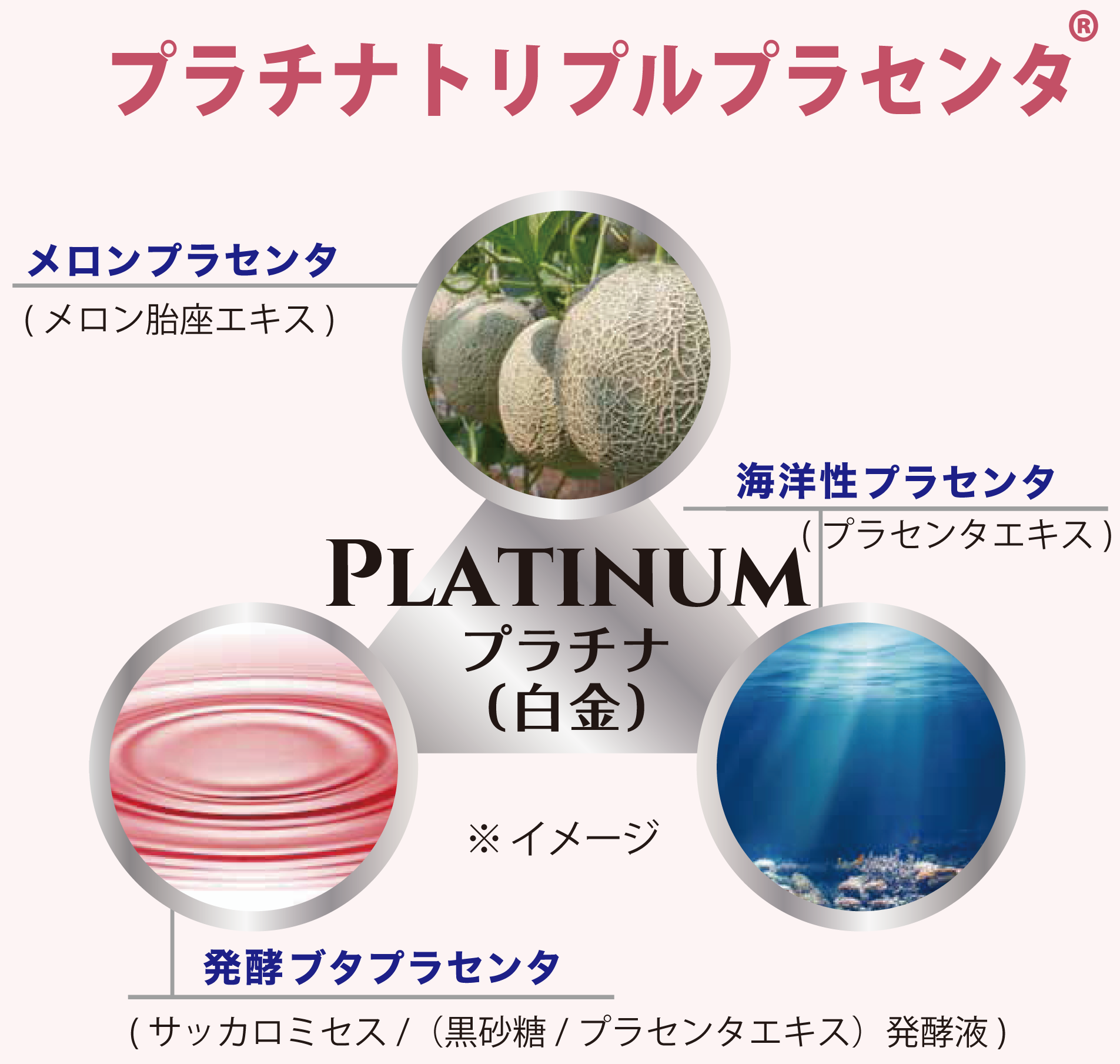 3つのプラセンタを「プラチナ(白金)」に被覆した独自開発成分。
